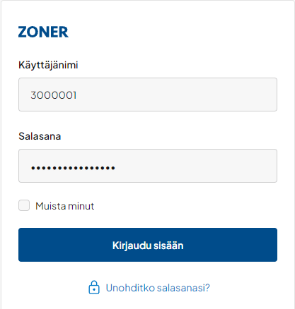 - Siirry Zoner Homen kirjautumissivulle: https://home.zoner.fi