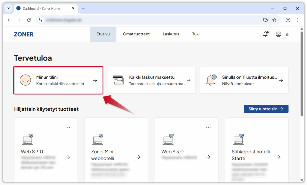 1. Kirjaudu Zoner Homeen ja klikkaa etusivulla Minun tilini.