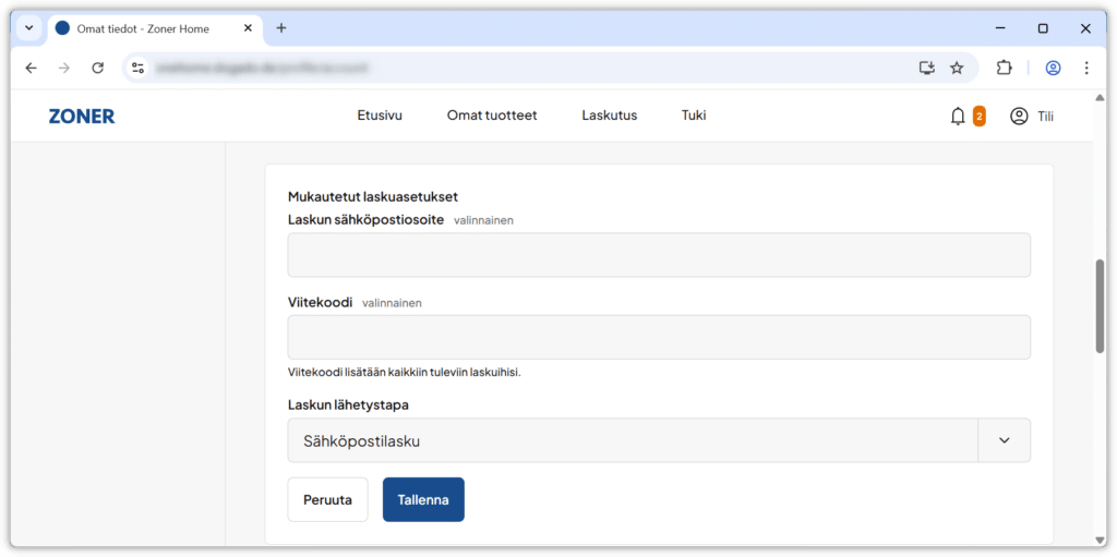 Huom: Näet kaikki asiakasnumerosi laskut Zoner Home -hallintapaneelin Laskut-sivulta riippumatta siitä, minkä laskun toimitustavan olet valinnut. Lue lisää: Missä näen tilaukseni laskut?