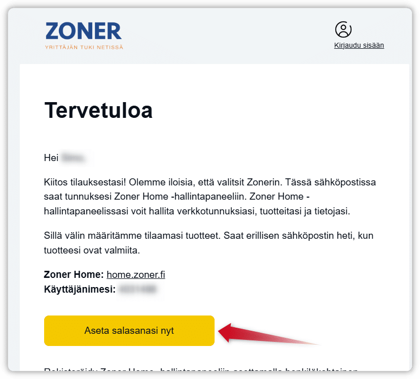 1. Asiakas luo oman Zoner Home -salasanan